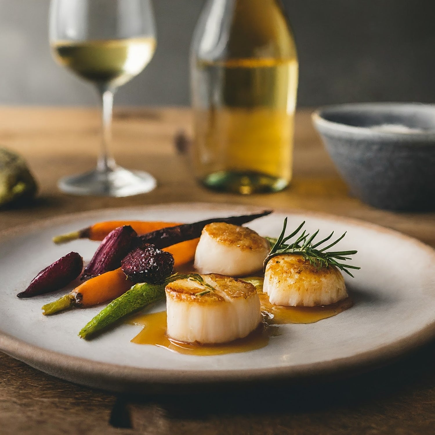 - Cook for 1 more minute and then brush the tops of the scallops with honey.